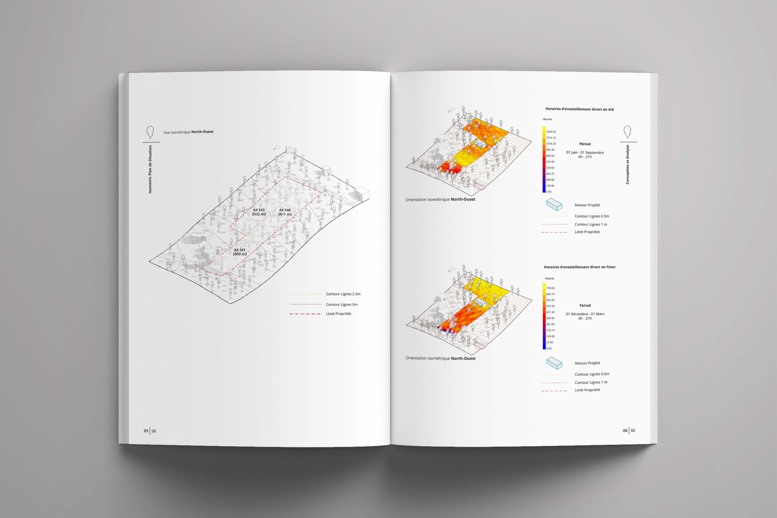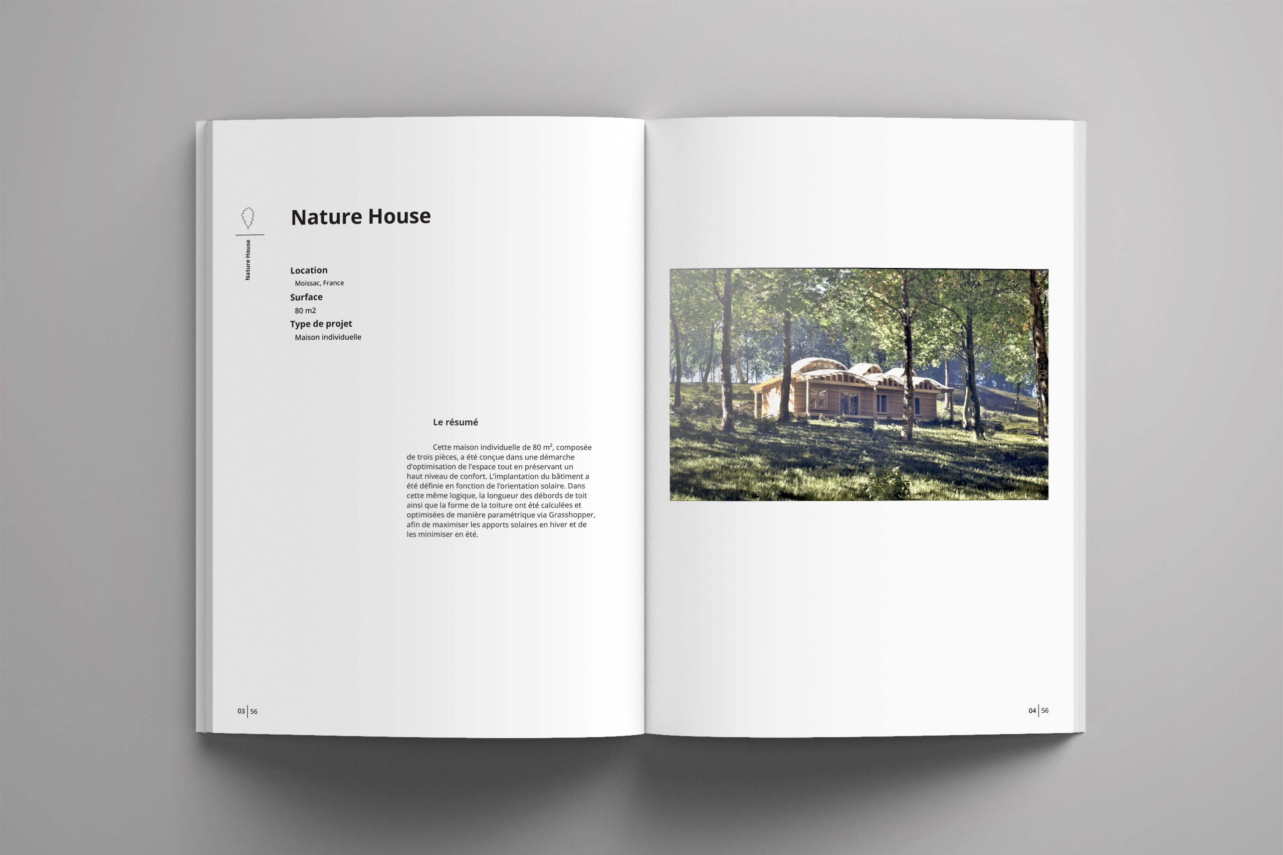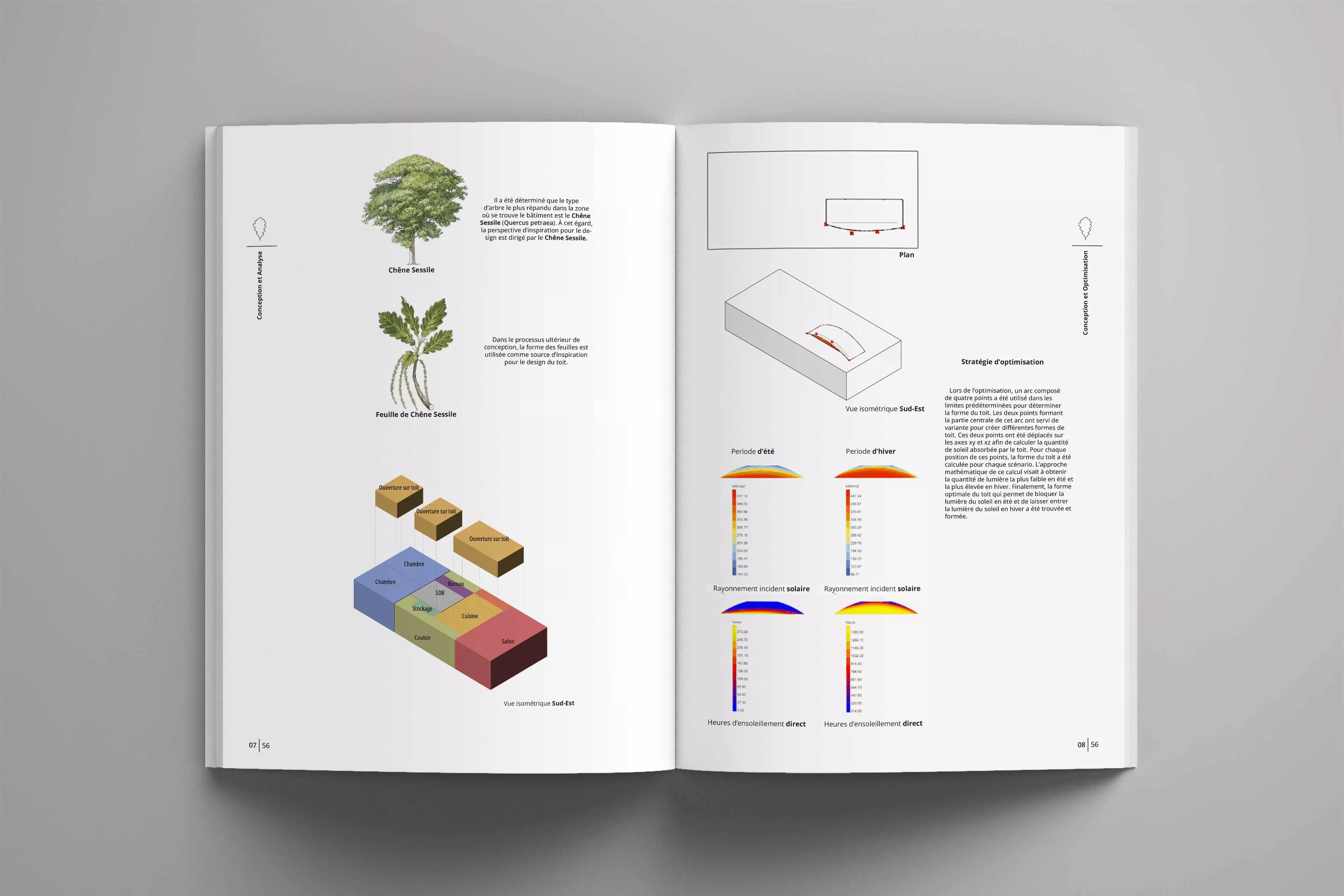 Cette maison individuelle de 80 m², composée de trois pièces, a été conçue dans une démarche d’optimisation de l’espace tout en préservant un haut niveau de confort. L’implantation du bâtiment a été définie en fonction de l’orientation solaire. Dans cette même logique, la longueur des débords de toit ainsi que la forme de la toiture ont été calculées et optimisées de manière paramétrique via Grasshopper, afin de maximiser les apports solaires en hiver et de les minimiser en été.